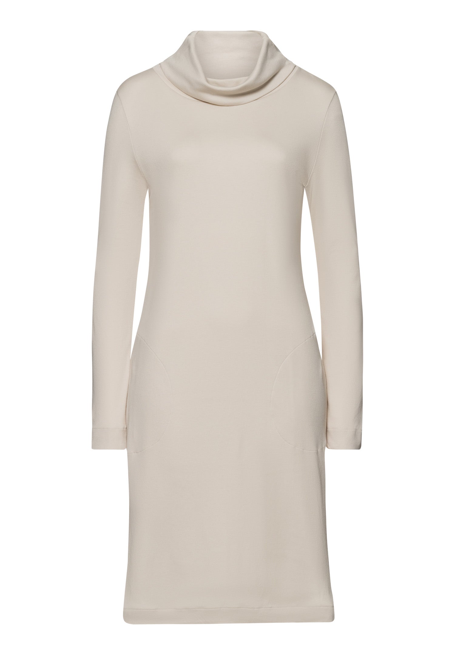 This HANRO long-sleeved nightdress from the Agatha collection combines simple design with an excitingly high level of comfort. Soft cotton interlock hugs natural curves comfortably. Pockets, extremely cozy interiors and a fashionable folded collar complete the nightwear look perfectly.