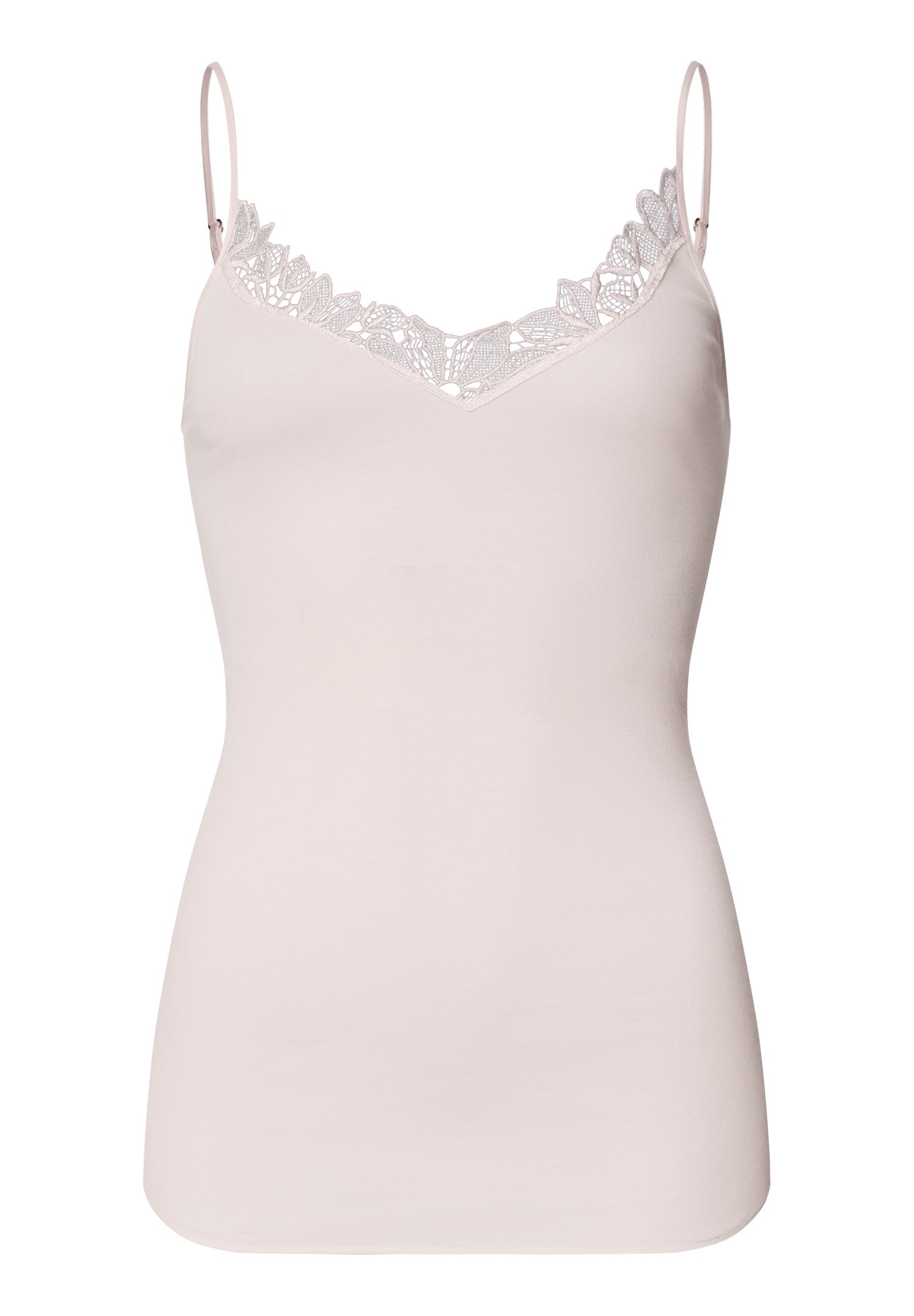 This camisole is perfect on its own, or under blouses with low necklines. Fine flowers and leaves in a V-look entwine delicately at the front of the neckline. This camisole has no hems or side seams and is wonderfully soft on your skin thanks to the mercerized cotton. In this finishing process, the fabric experiences a silky sheen, a higher color brilliance and a longer life than classic cotton.