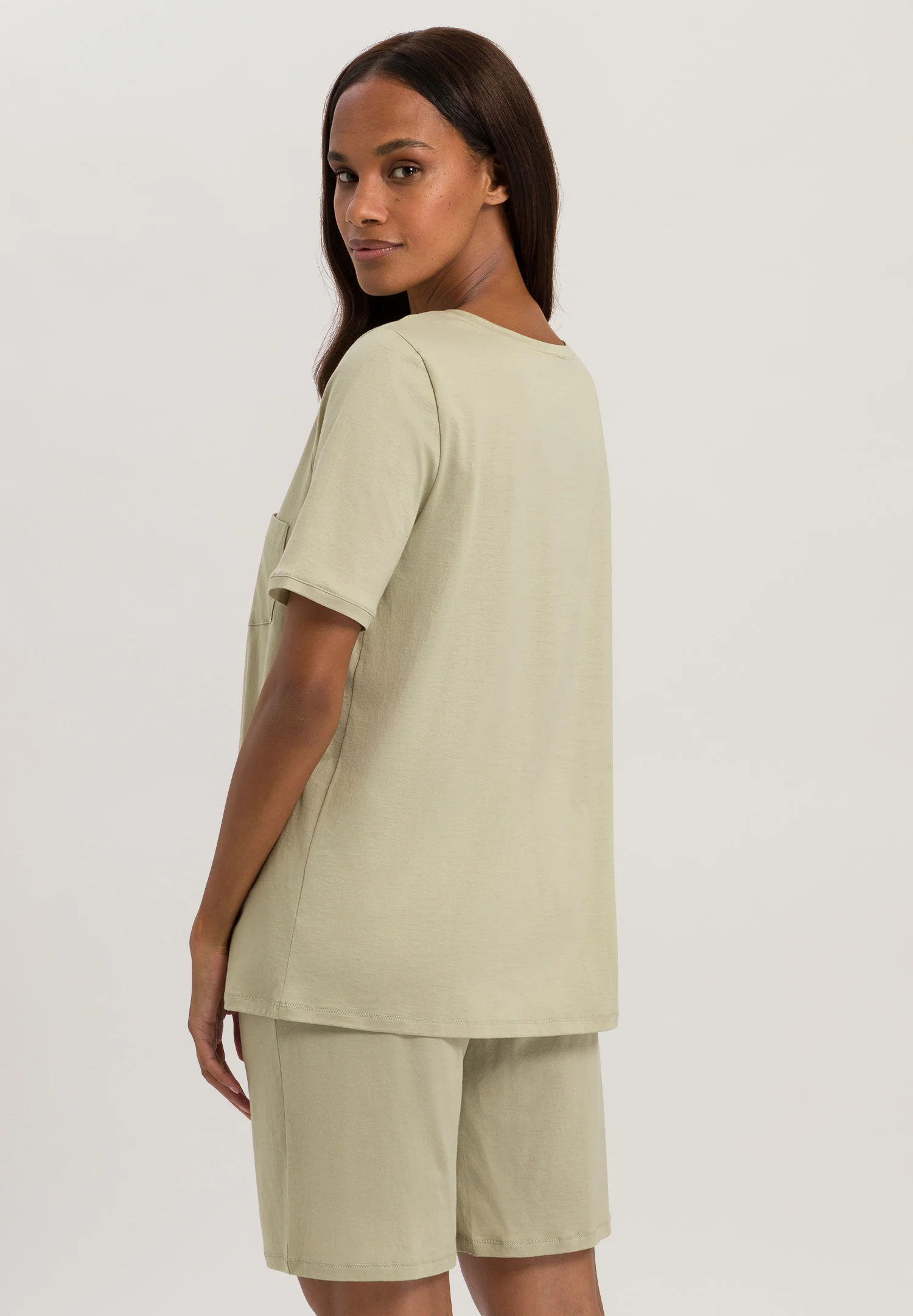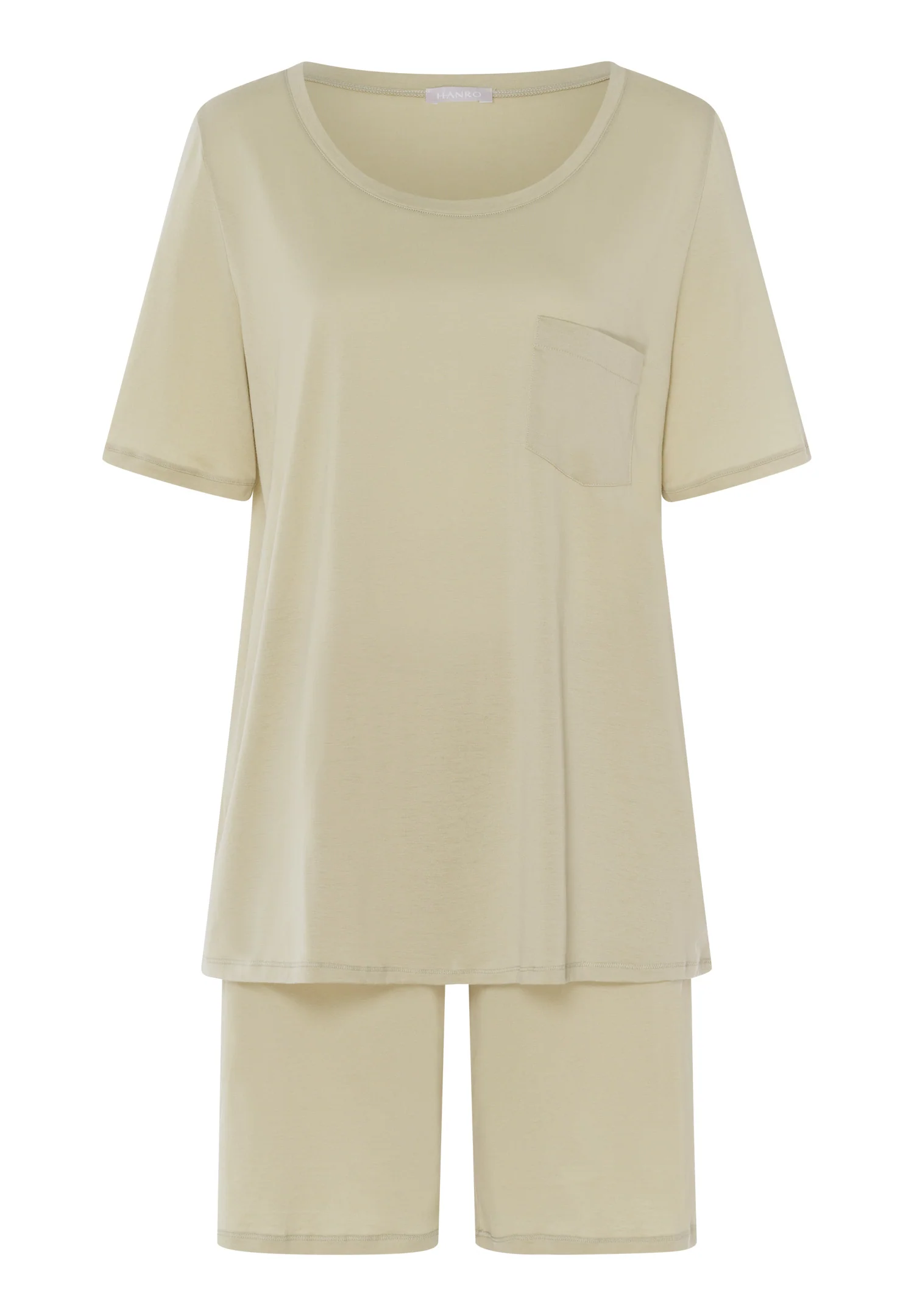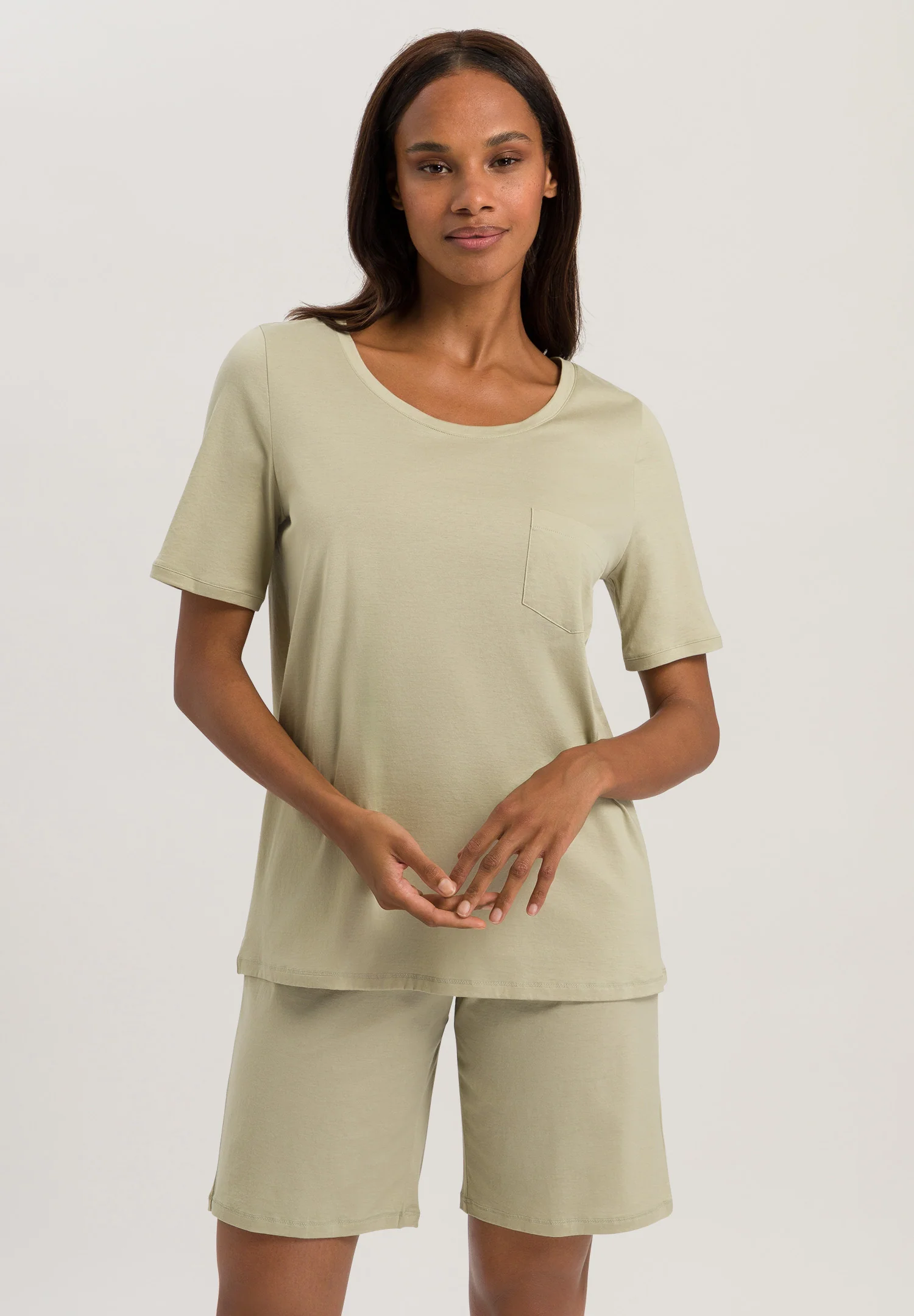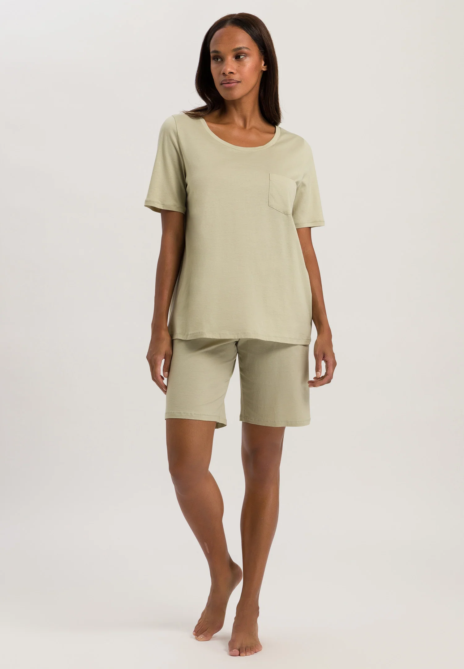 Clean and contemporary, the HANRO Cotton Deluxe Short Sleeve Pajama set combines classic pajama styling with functional, fashionable design elements. This pajama top has a cotton voile chest pocket, while the pajama pants feature a covered elastic waistband for a custom fit.