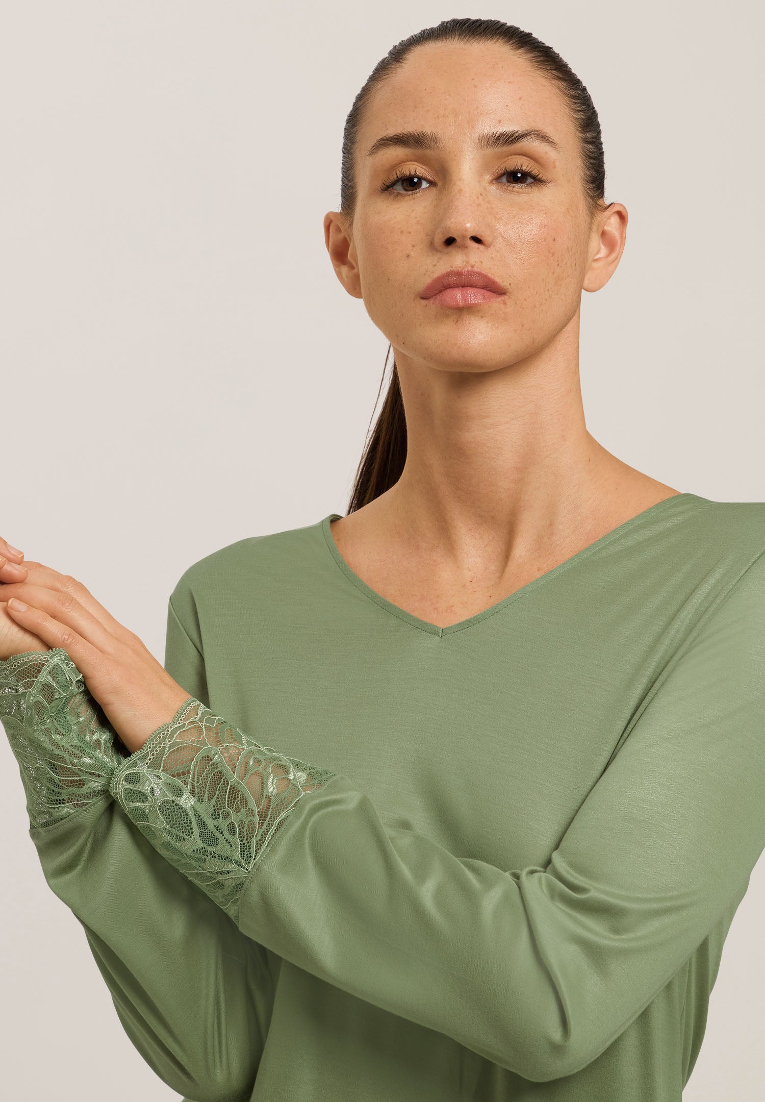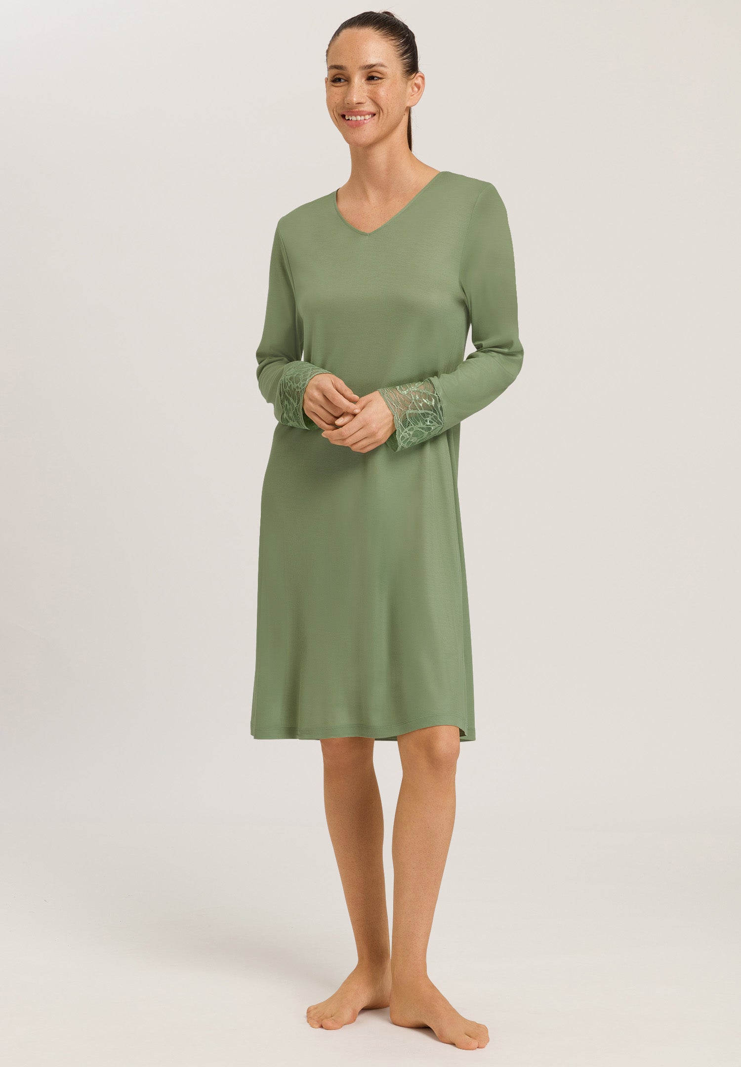 HANRO Elia Lace V-Neck Nightgown Loden Frost | Womens Women’s Crop Tops