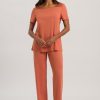 HANRO Emma Silk Trim Cotton Pajama Set Apricot Brandy | Womens Women’s Pajama Sets
