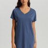 HANRO Laura Cotton Blend V-Neck Bigshirt Slate Blue | Womens Women’s Nightgowns