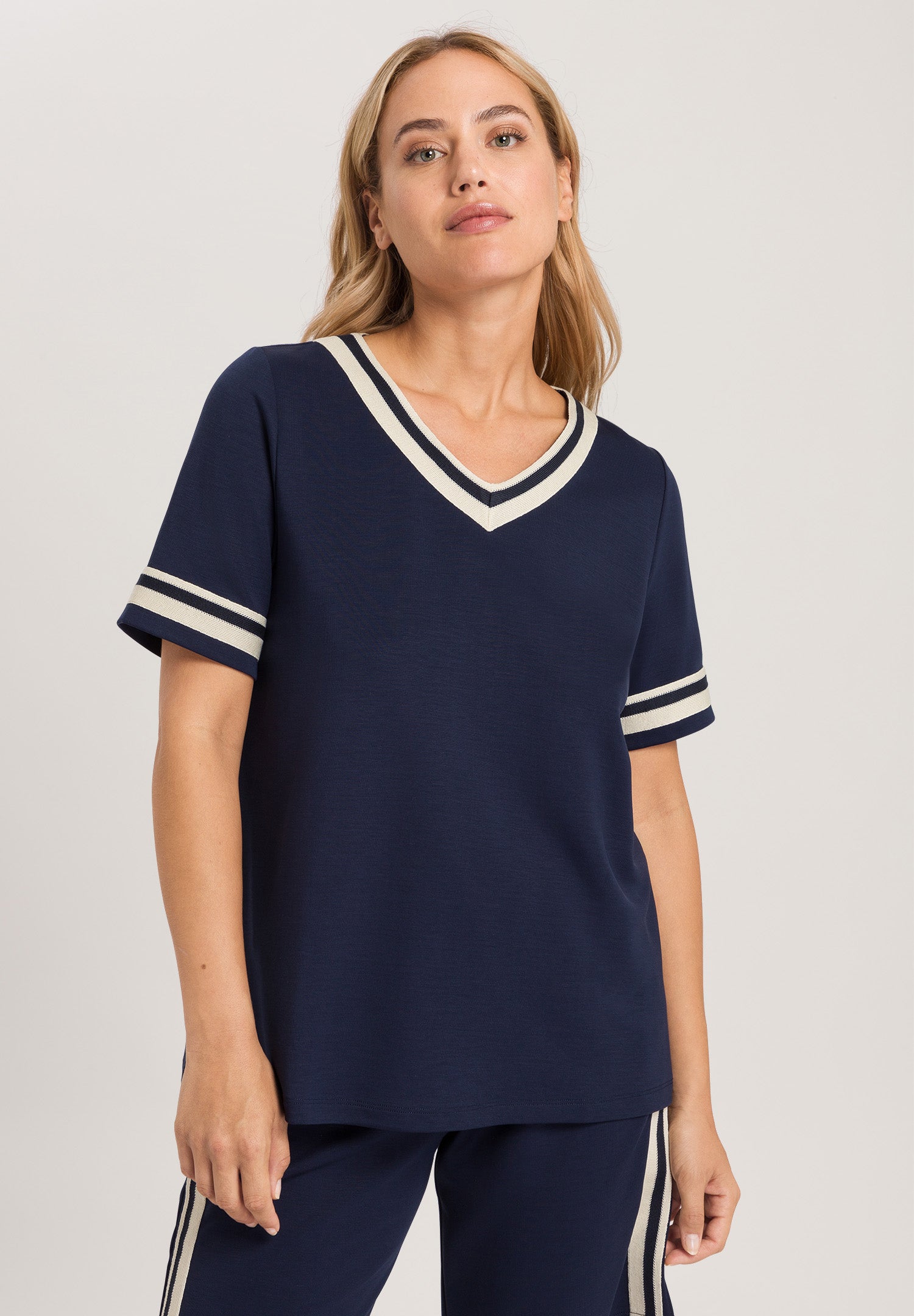 HANRO Madeleine Tencel V-Neck Top Deep Navy | Womens Women’s Tops
