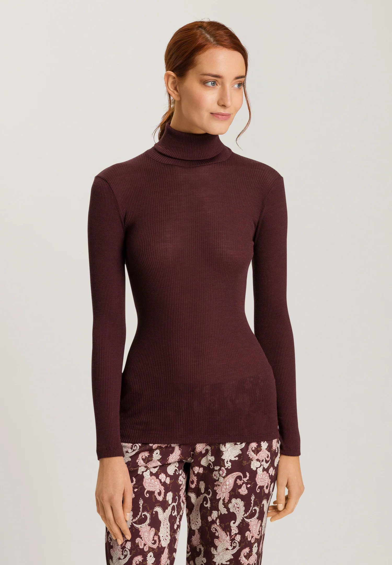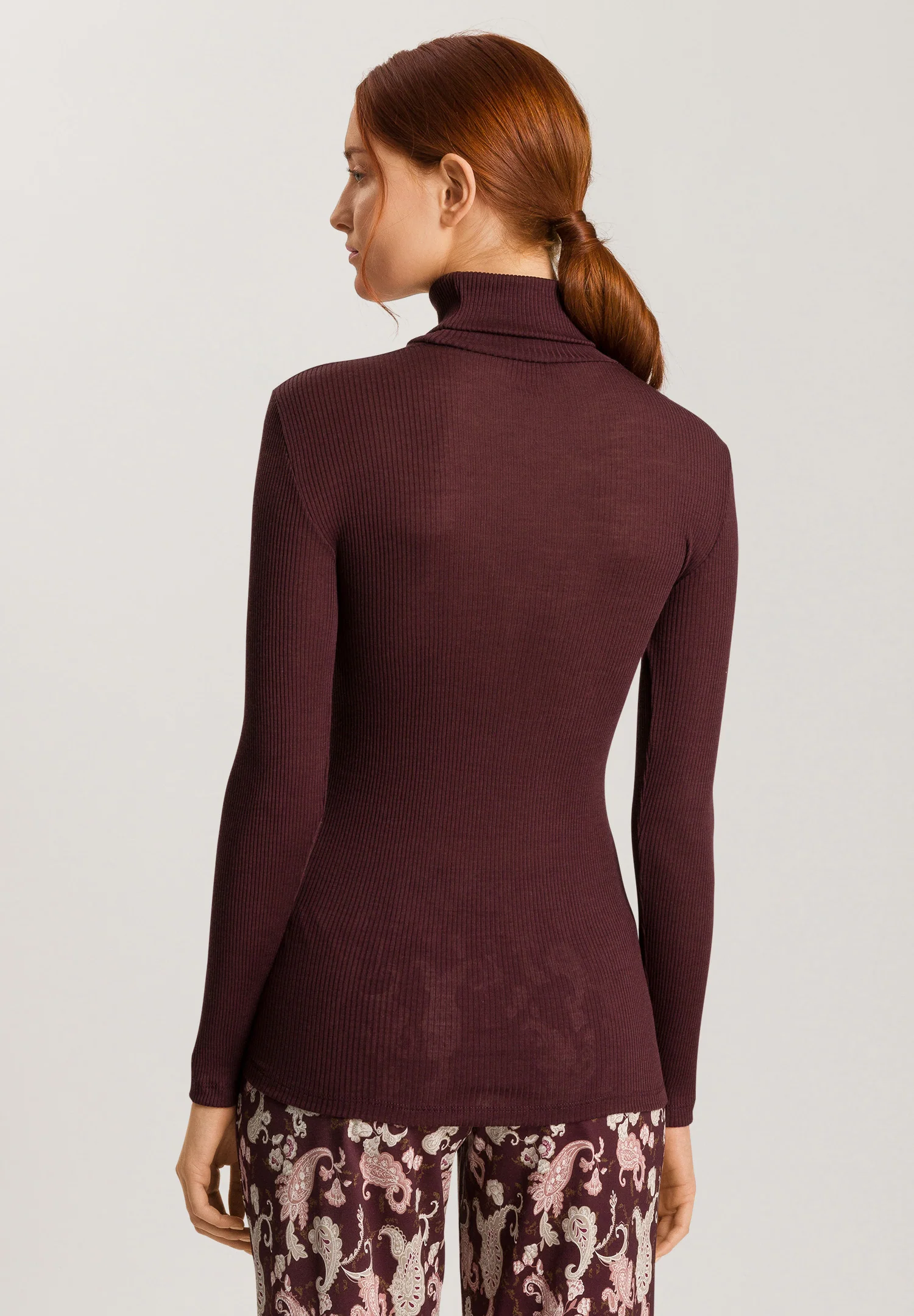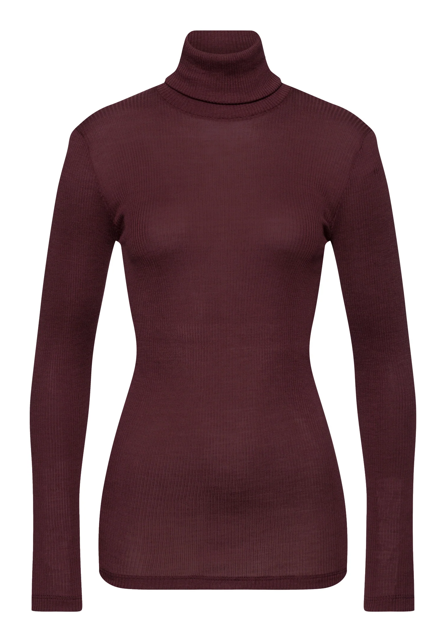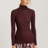 HANRO Maria Wool and Silk Fine Ribbed Turtleneck Deep Maroon | Womens Women’s Tops