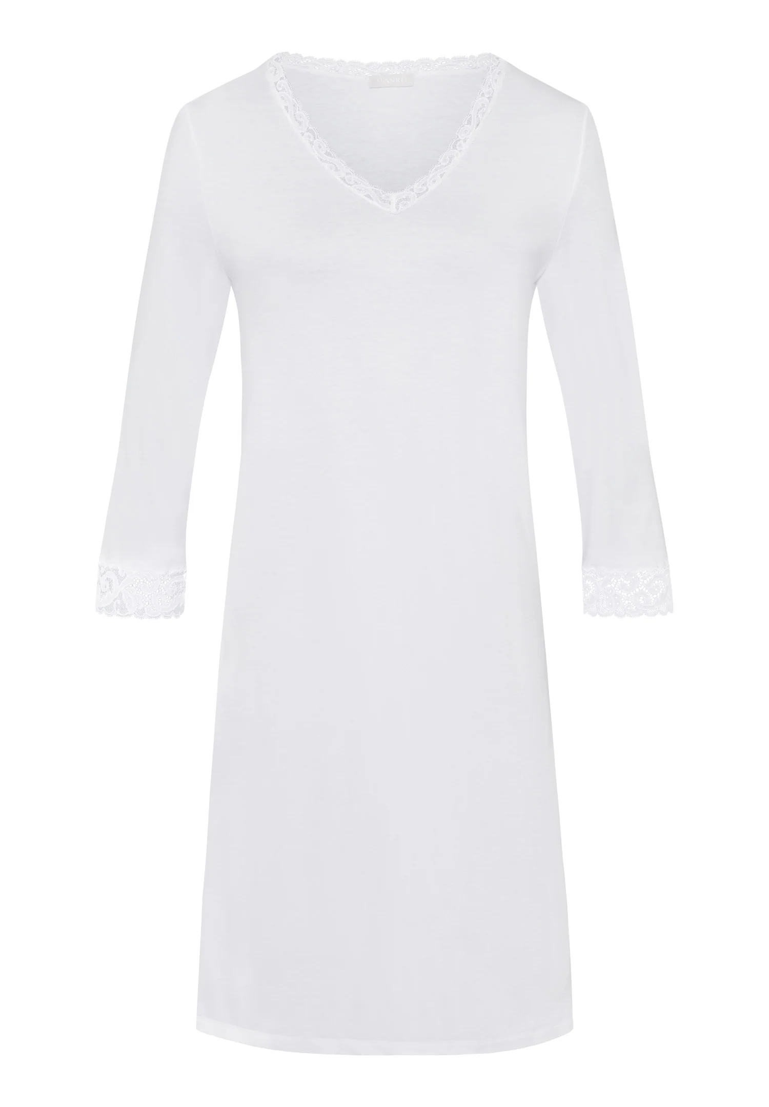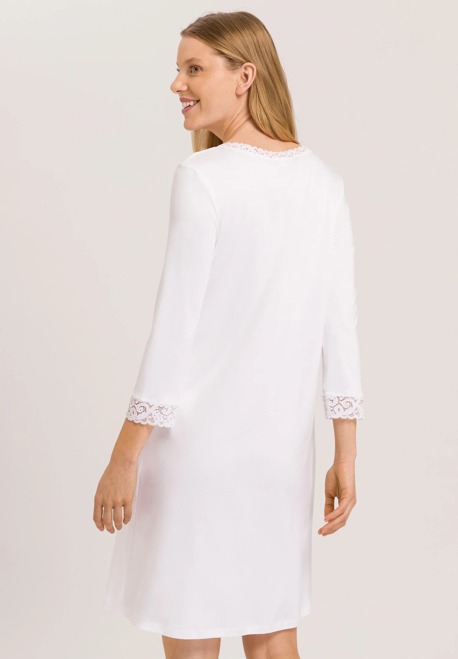 Elegant and feminine, the HANRO Moments 3/4 sleeve gown is tailored from 100% mercerized cotton for incredible nighttime comfort. This special style trimmed in lace feels wonderful on the skin. A perfect option to sleep or lounge.