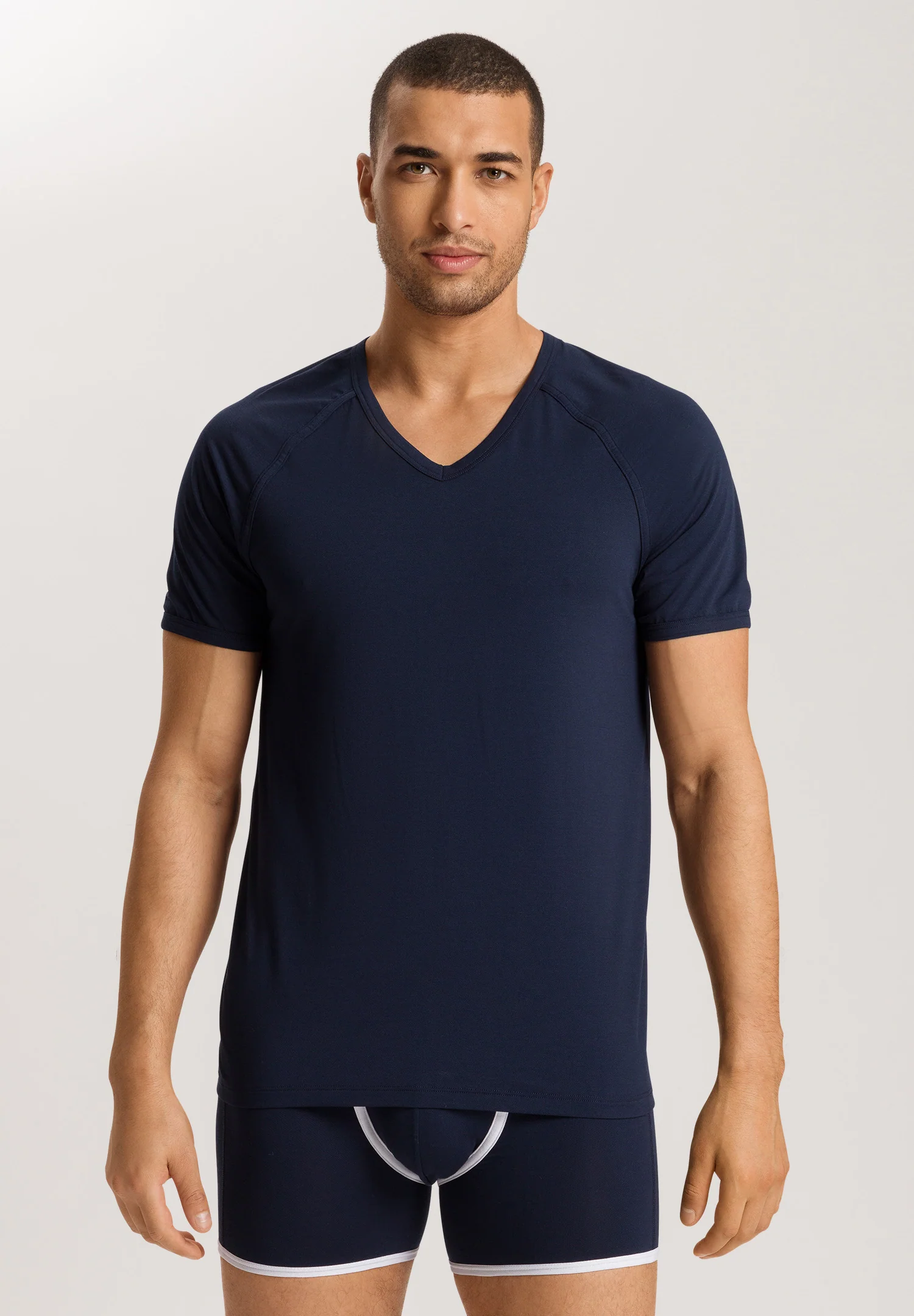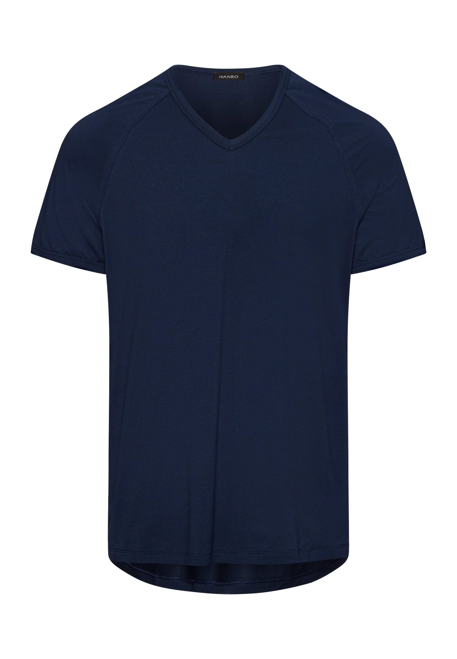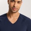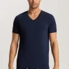 HANRO Pierre Cotton Blend V-Neck T-Shirt Deep Navy | Men Men’s Tops