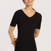 HANRO Pure Silk Fitted Silk V-Neck Top Black | Womens Women’s Tops