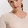 HANRO Pure Silk Fitted Silk V-Neck Top Pale Cream | Womens Women’s Tops