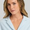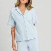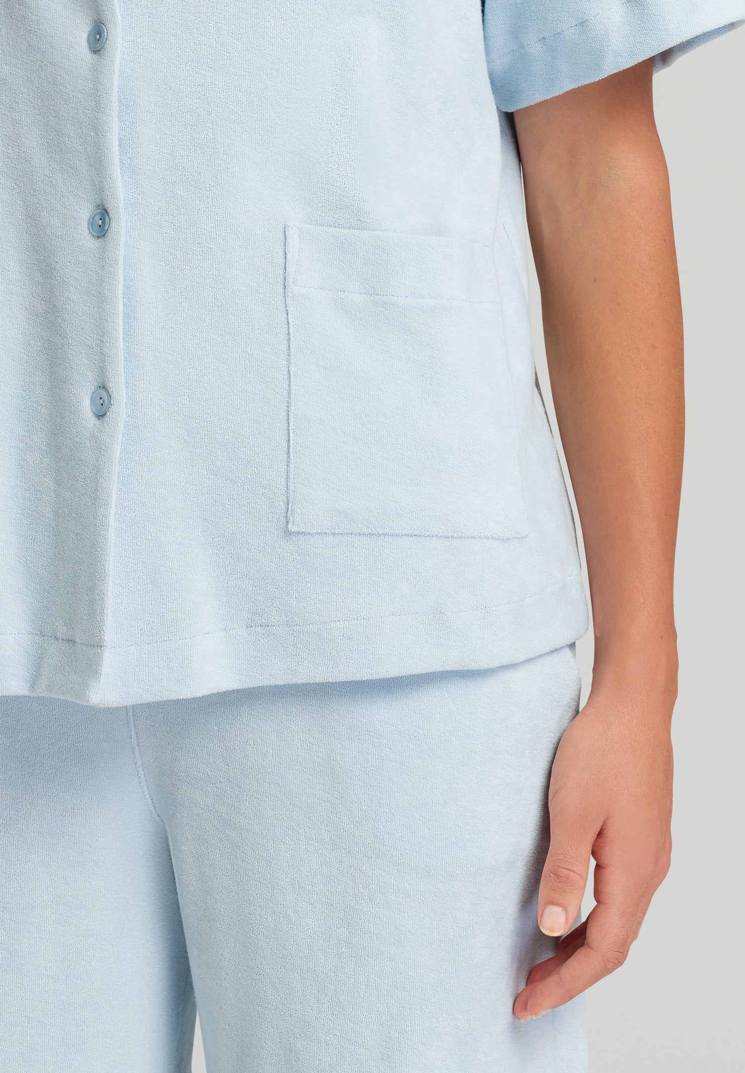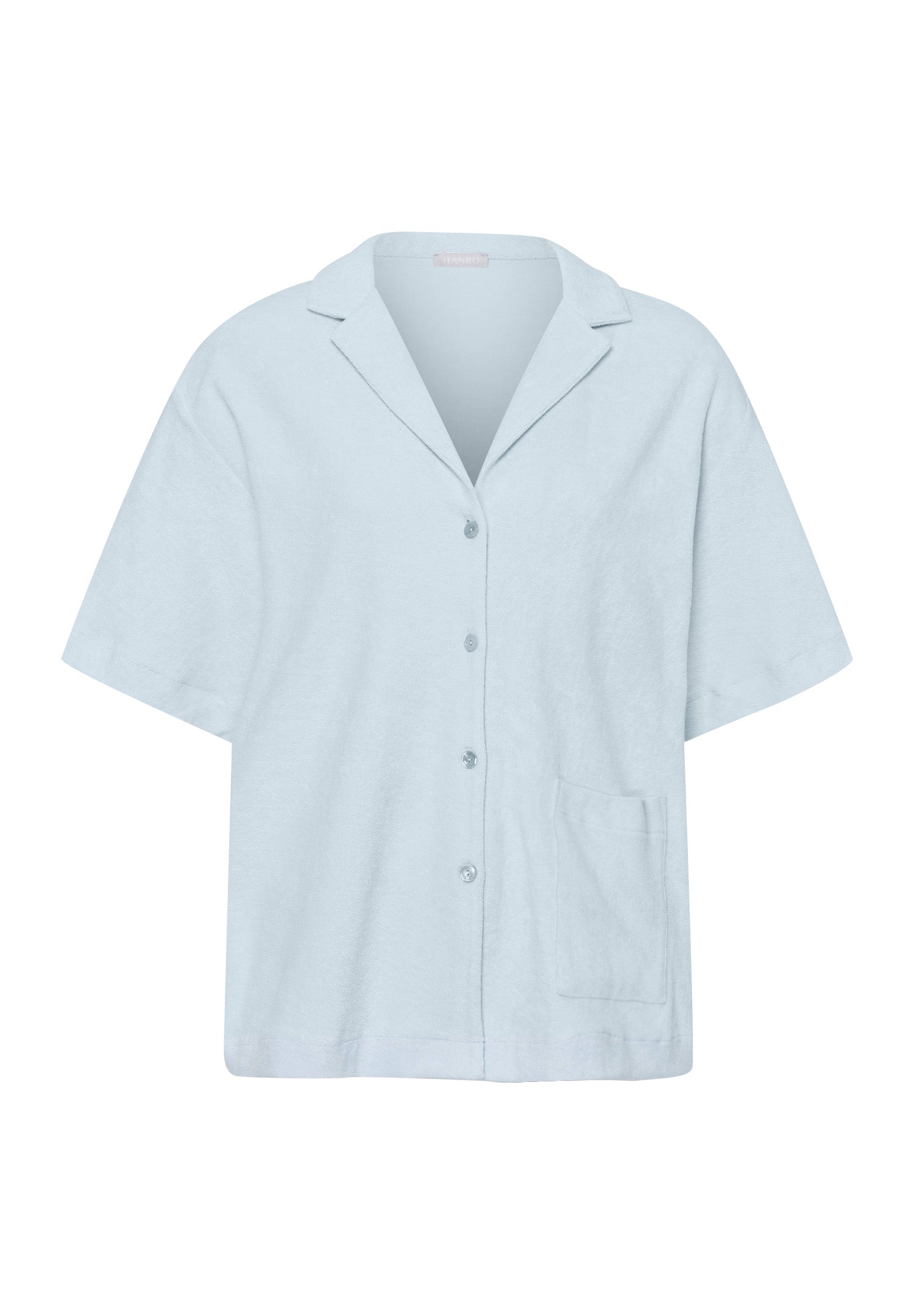 HANRO Sleep And Lounge Notch Collar Cotton Shirt Misty Blue | Womens Women’s Pajama Tops