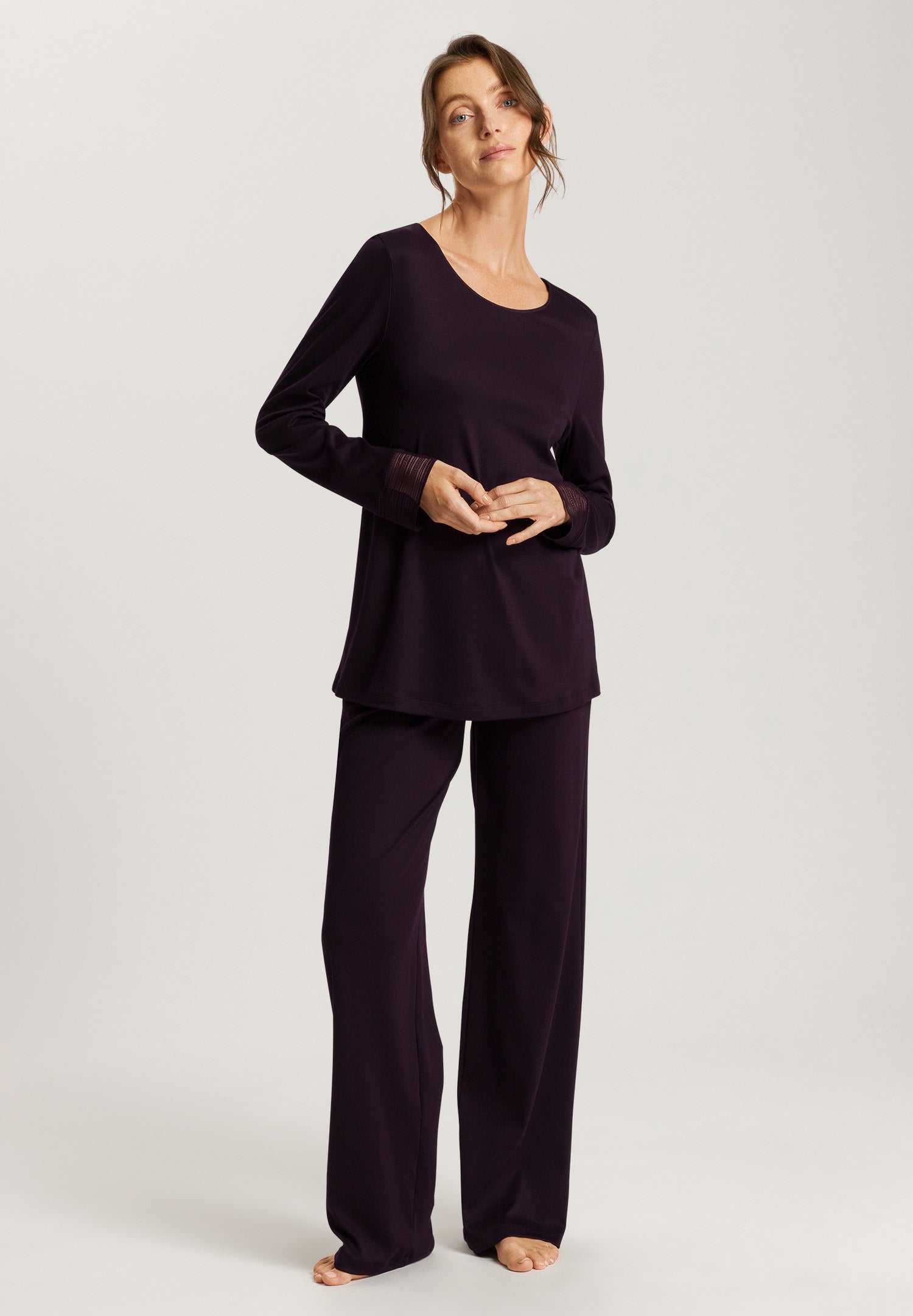 HANRO Sophie Cotton Pajama Set Dark Acai | Womens Women’s Pajama Sets