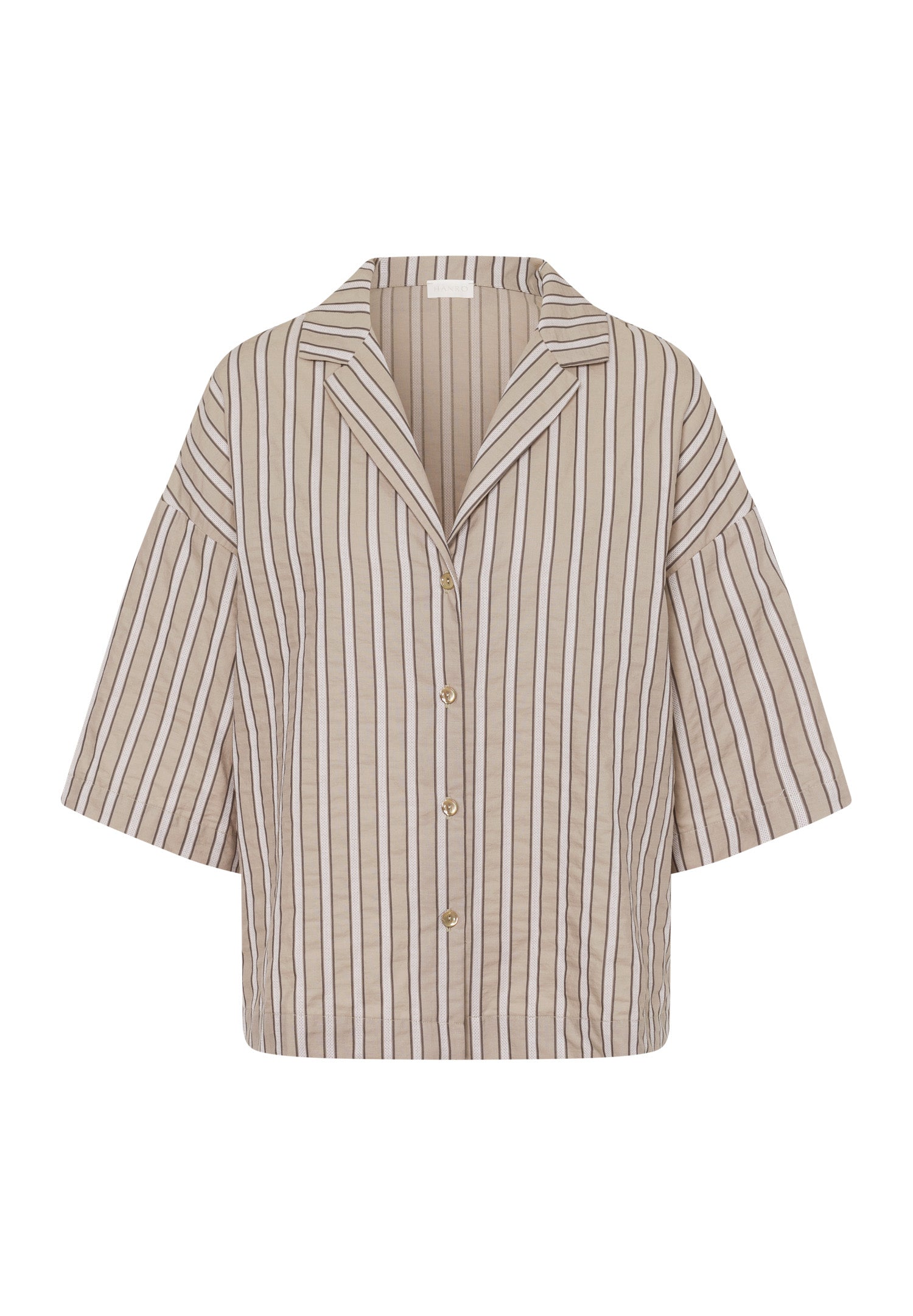 HANRO Urban Casuals Notch Collar Shirt Earthy Stripe | Womens Women’s Tops