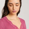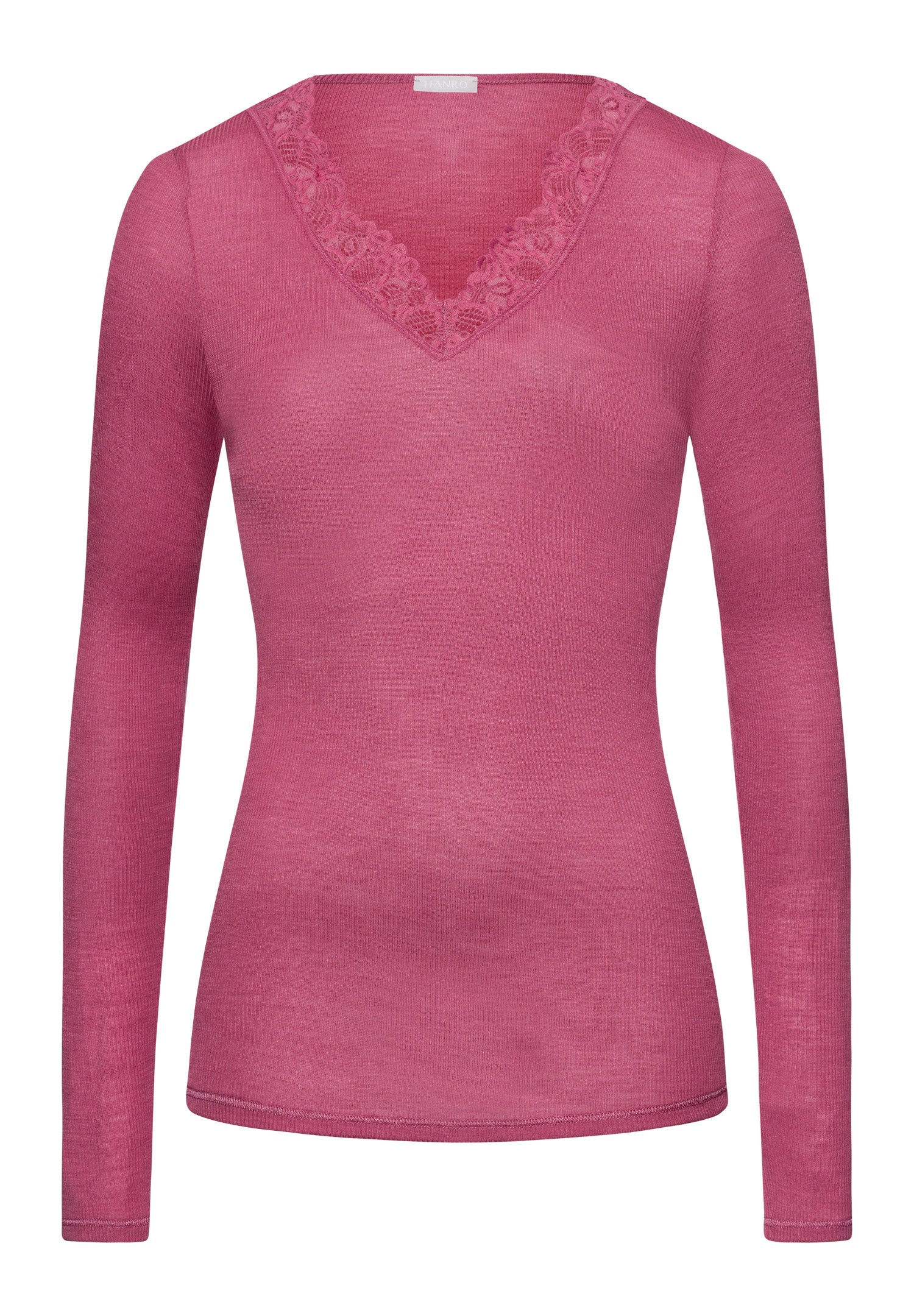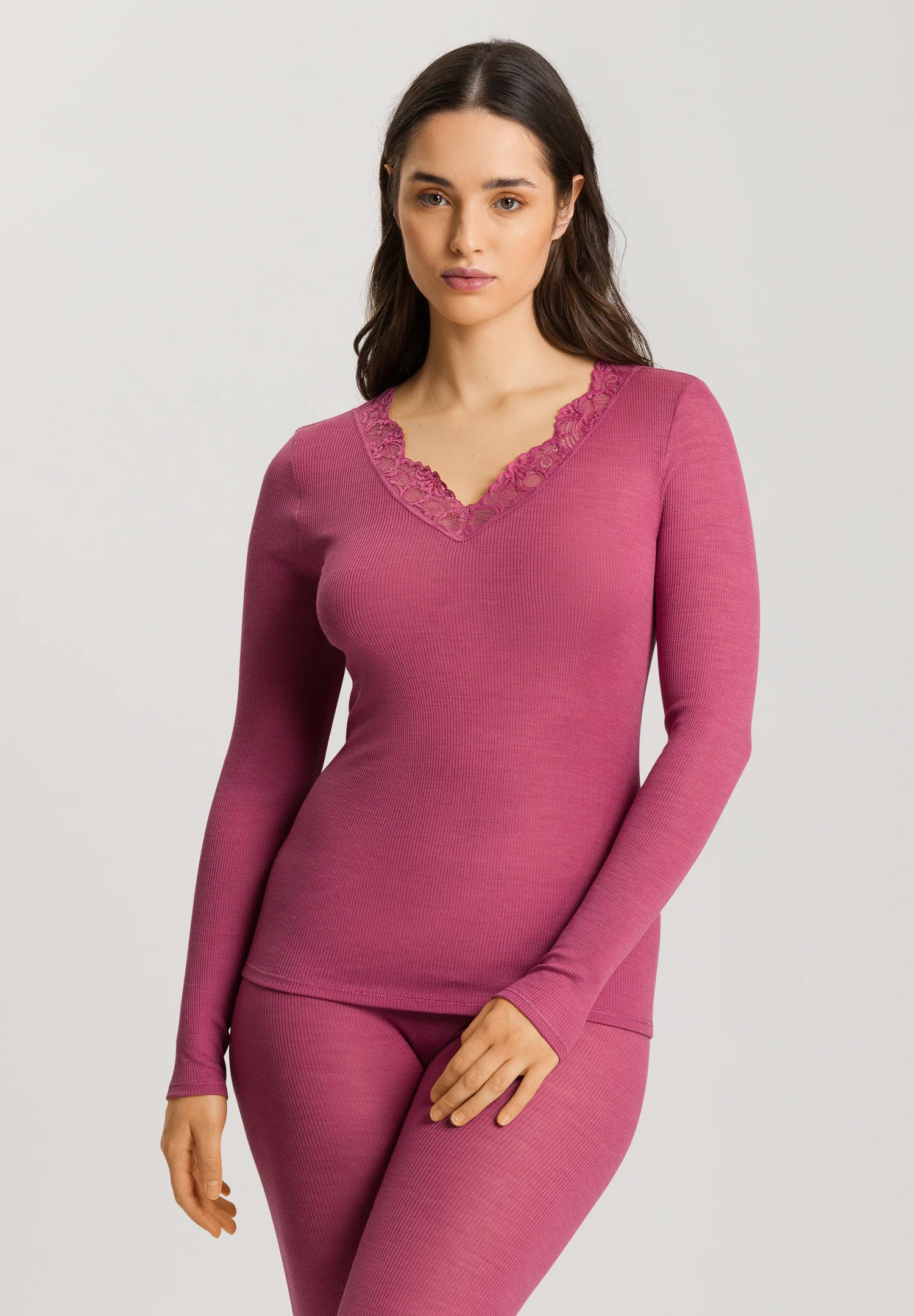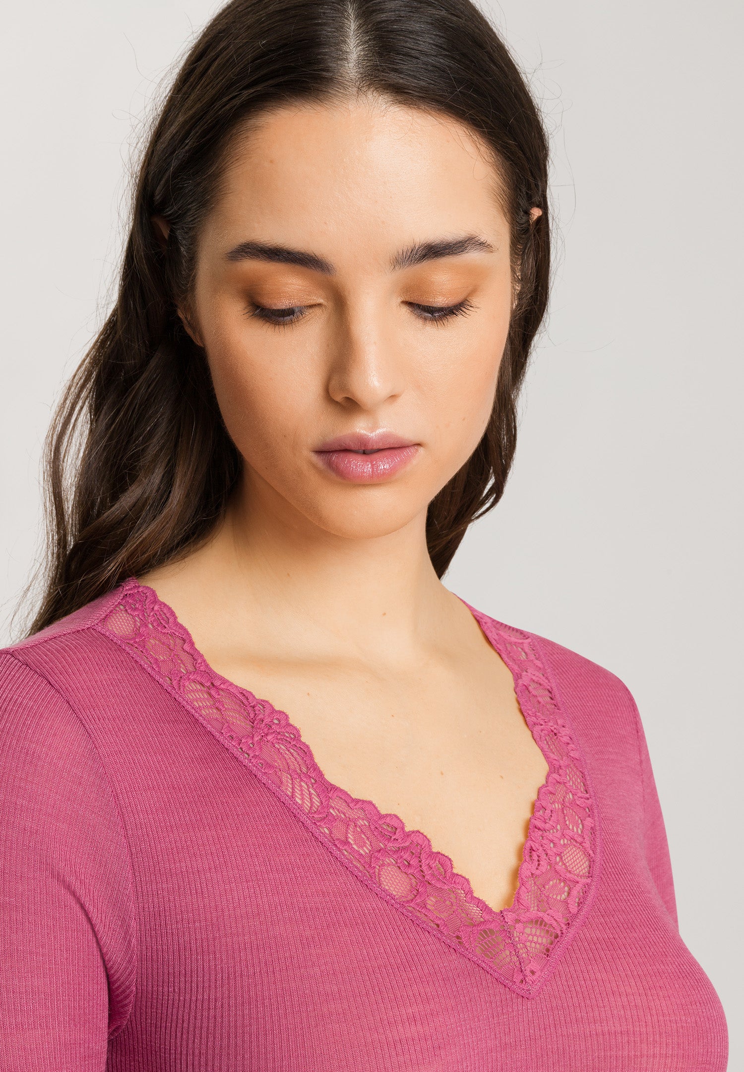 HANRO Woolen Lace Fine Ribbed Wool And Silk V-Neck Top Rose Wine | Womens Women’s Tops